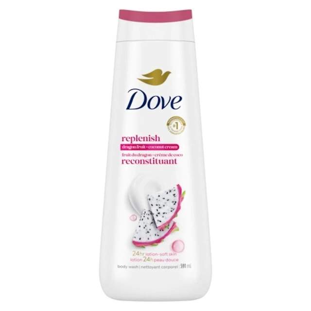 Dove Gel douche pour une peau d'apparence saine, Reconstituant aux fruits du dragon et à la crème de noix de coco, avec MicroMoisture renouvelant pendant 24 heures, 591 ml