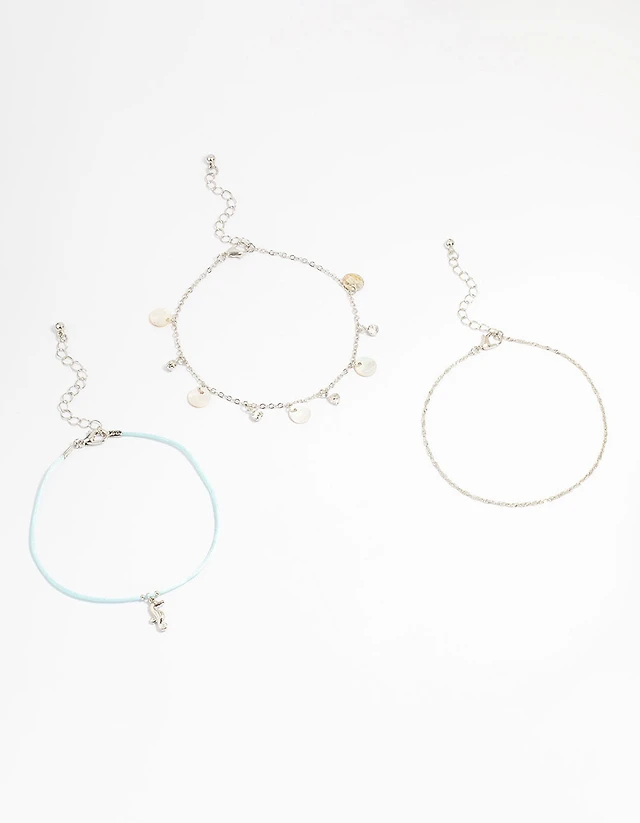 Pack de 3 bracelets de chevilles en coquillage authentique en coquille de mer argenté