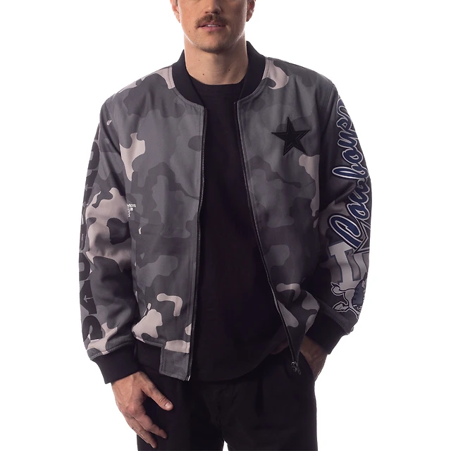 Blouson aviateur camouflage unisexe The Wild Collective gris Dallas Cowboys