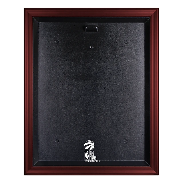 Vitrine de maillot avec logo des champions de la finale de la NBA 2019 encadrée en acajou des Raptors de Toronto