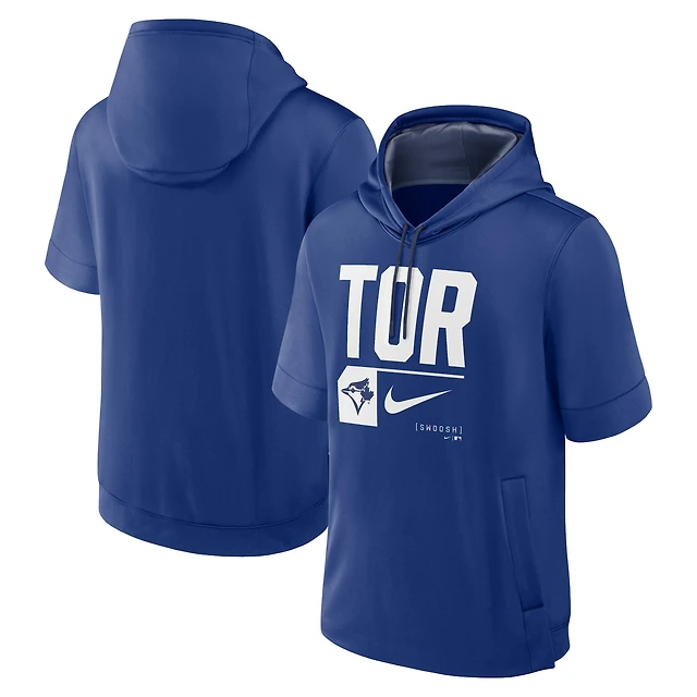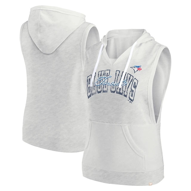 Pull à capuche sans manches col en V Fanatics gris Toronto Blue Jays Lounge Script pour femmes