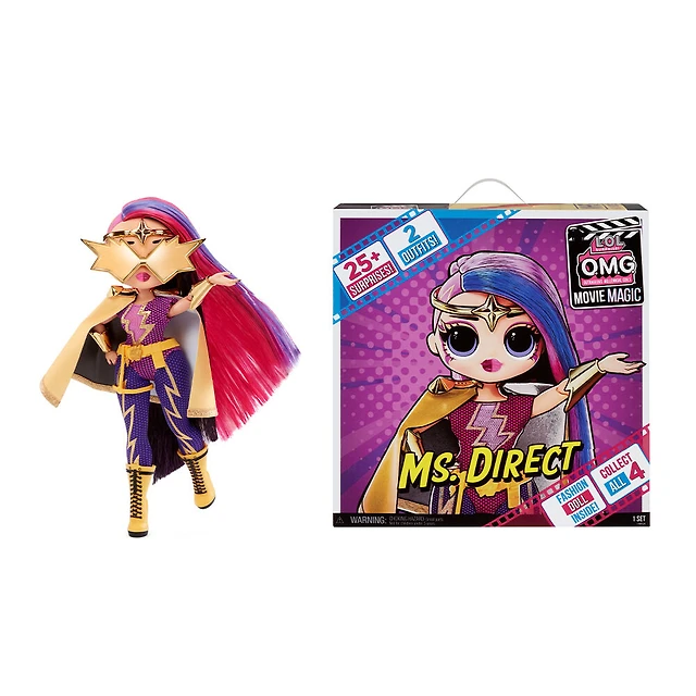 Poupée-mannequin LOL Surprise OMG Movie Magic, Ms. Direct, avec 25 surprises incluant 2 tenues tendance, lunettes 3D, accessoires de cinéma et jouet réutilisable