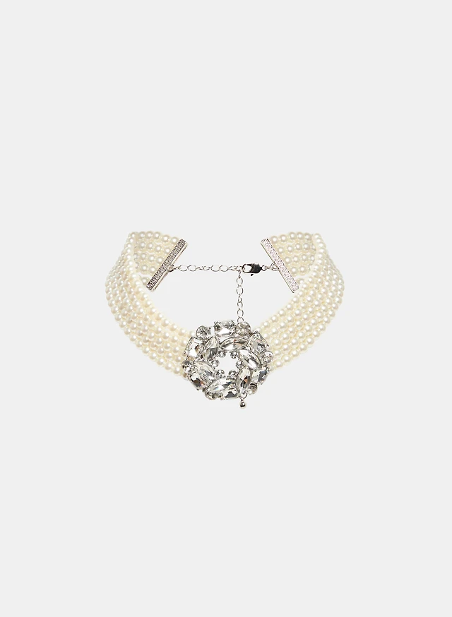 Collier ras-du-cou à perles et fleur en cristaux