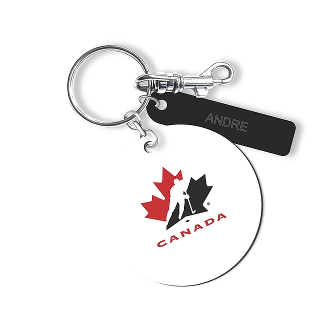 Étiquette de sac ronde en cuir blanche Hockey Canada personnalisée