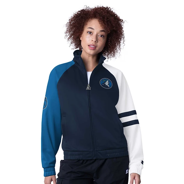 Veste de survêtement zippée intégrale pour femme Starter Navy Minnesota Timberwolves Line Up Dolman Raglan