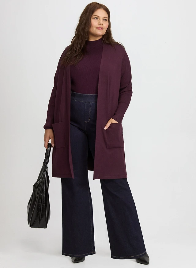 Cardigan ouvert style tunique et jean à enfiler à jambe semi-évasée