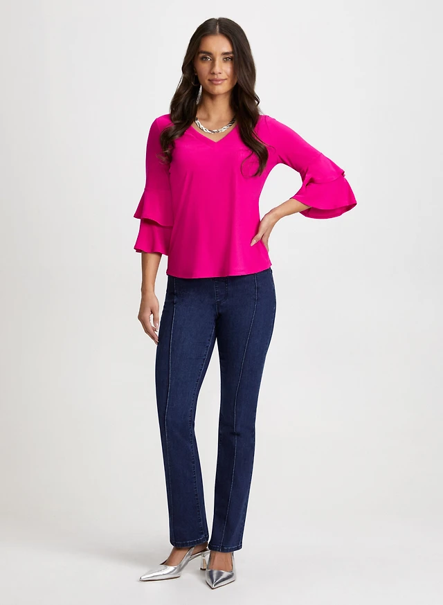 Haut à manches volantées et jean à enfiler