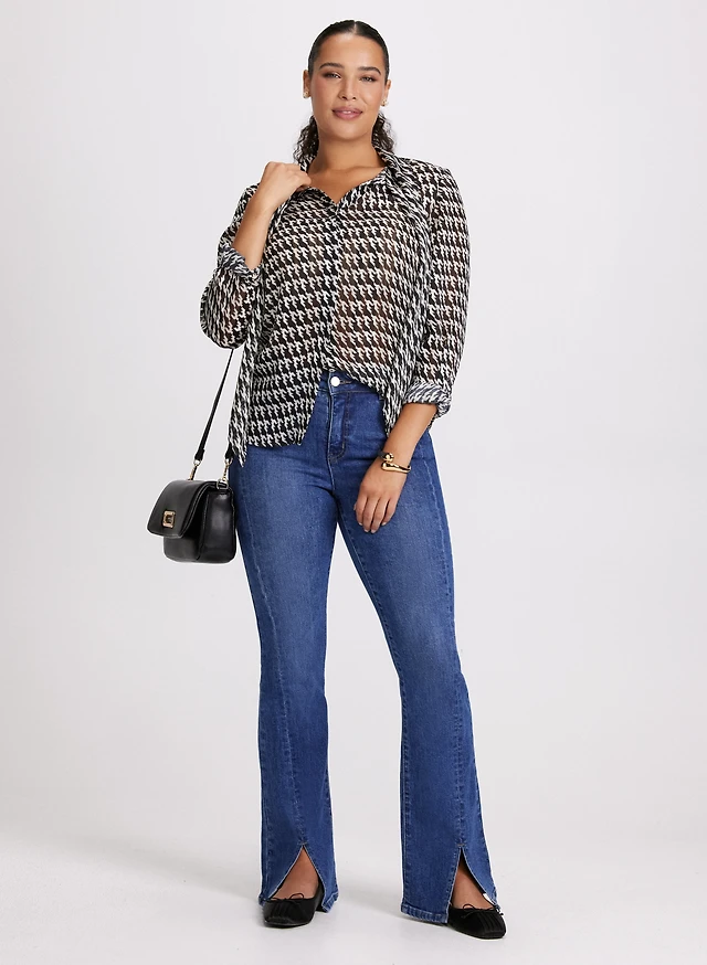 Veste en bouclé à boutons et pantalon à ourlet fendu