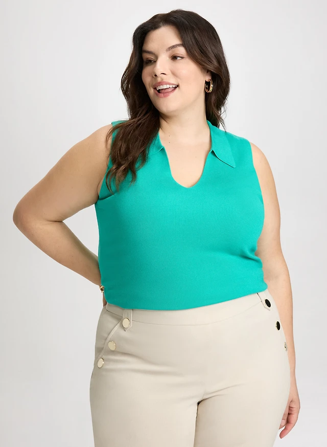 Polo sans manches côtelé