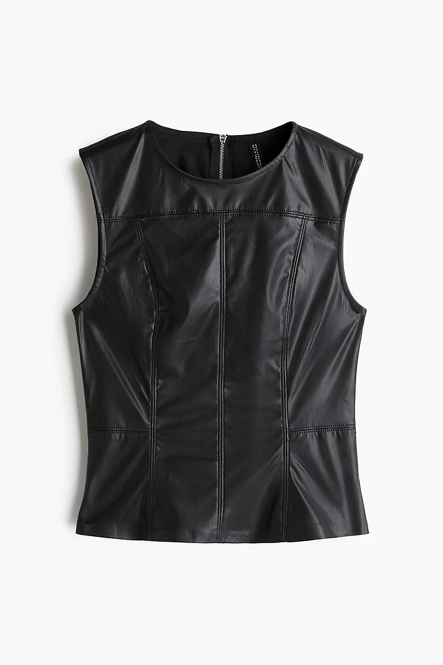 Débardeur à col montant et pantalon gaucho en cuir végane