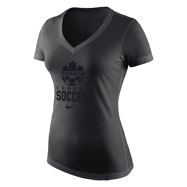 T-shirt à col en V ton sur trois mélanges Nike Canada Soccer pour femme, noir