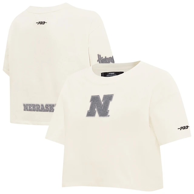 T-shirt court boxy en tissu éponge français inversé Pro Standard crème Nebraska Huskers pour femme