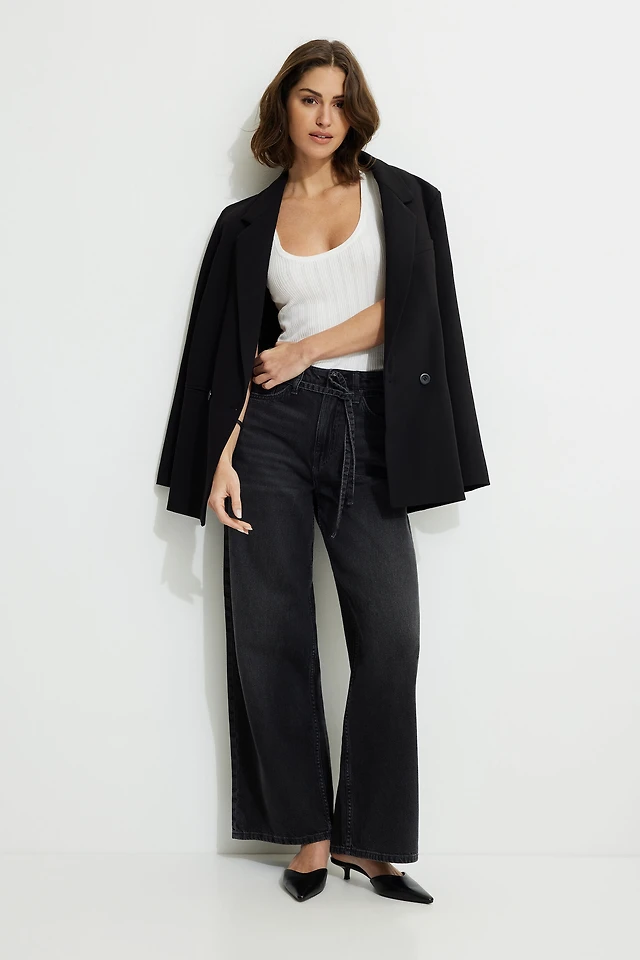 Jean Mika à taille mi-haute et jambe droite décontractée