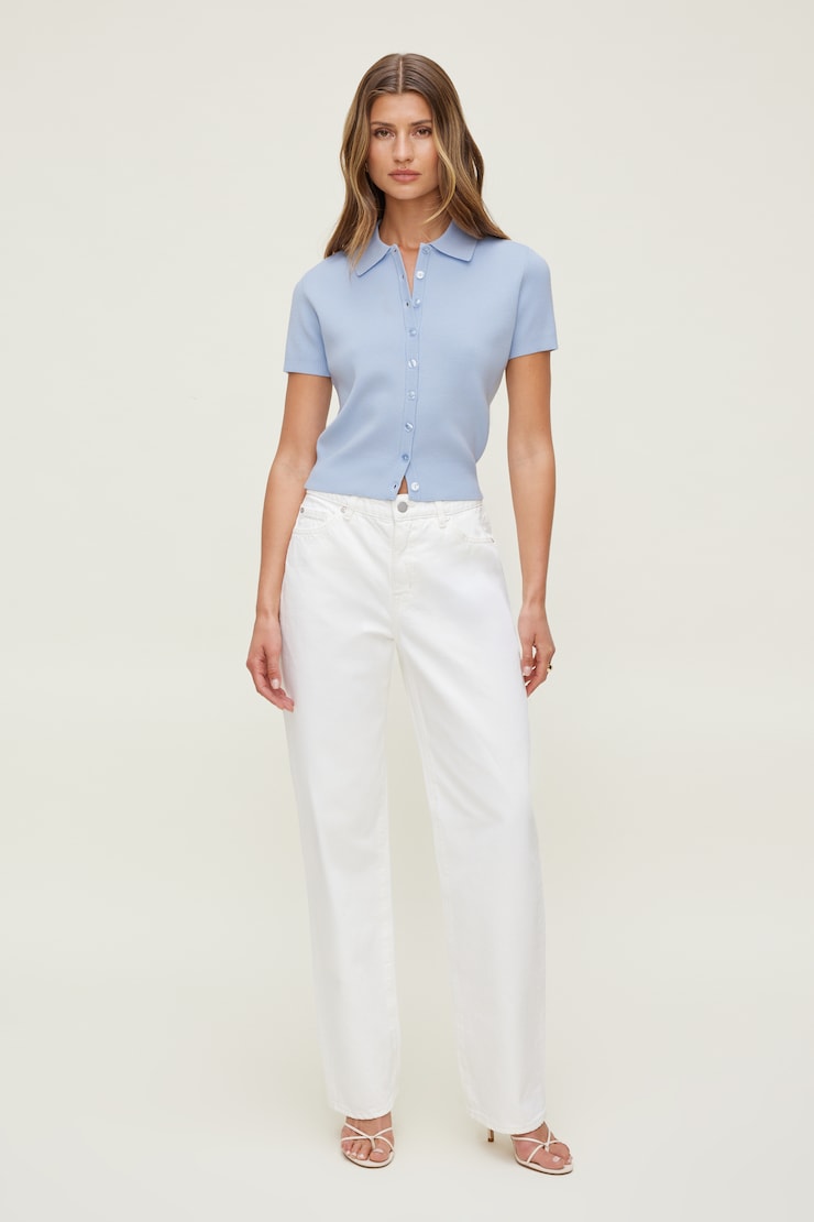 Jean court à jambe droite avec ourlet roulé et taille haute