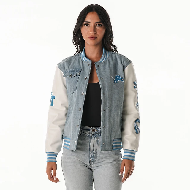 Veste en jean universitaire à boutons-pression pour femme The Wild Collective des Detroit Lions
