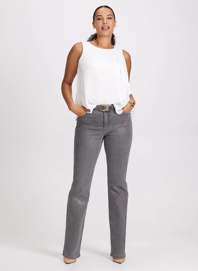Veste en cuir végane à broderies et pantalon à jambe droite