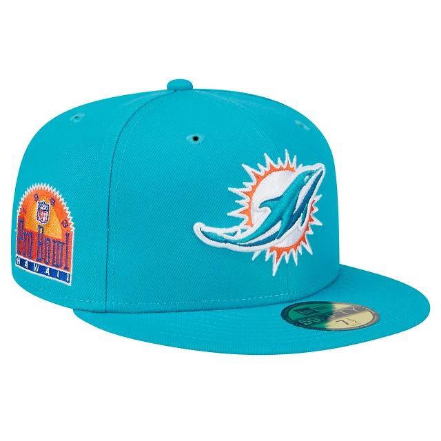 Casquette ajustée 59FIFTY Main New Era Aqua Miami Dolphins Throwback pour hommes