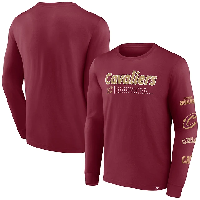 T-shirt à manches longues Fanatics Wine Cleveland Cavaliers Baseline pour hommes