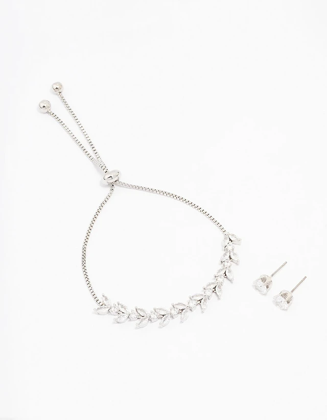 Coffret de bijoux en zircone cubique en argent avec vigne Marquise