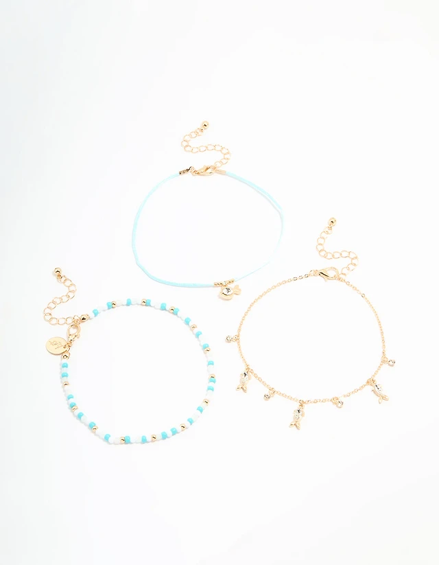 Poisson diamant doré & bracelets de cheville à perles bleues en pack de 3