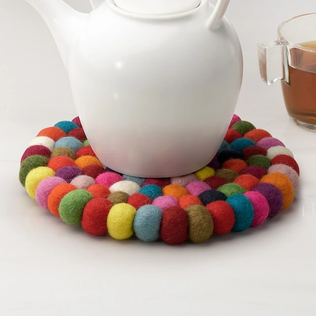Dessous de plat en boules en feutre de laine par Torre & Tagus - multicouleur