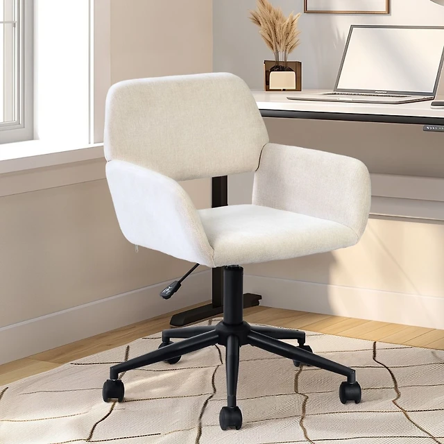 Chaises de salle à manger en tissu blanc crème avec pieds noirs , Ensemble de 4