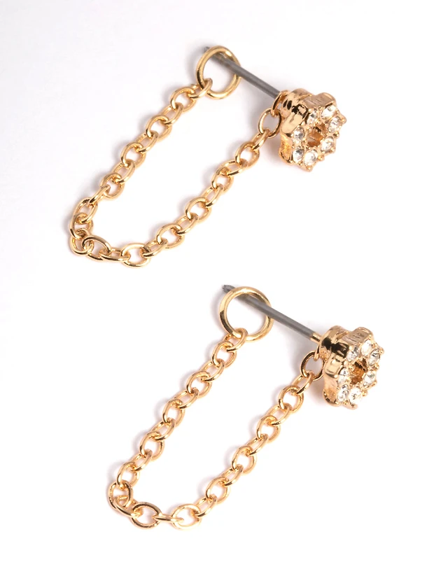 Boucles d’oreilles en chaîne de fleurs en or devant et arrière