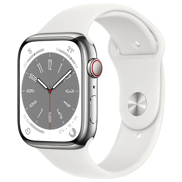 Apple Watch Series 8 45 mm (GPS + Cell) en acier inoxydable argenté et bracelet de sport blanc de TELUS - M/G - Financement mensuel