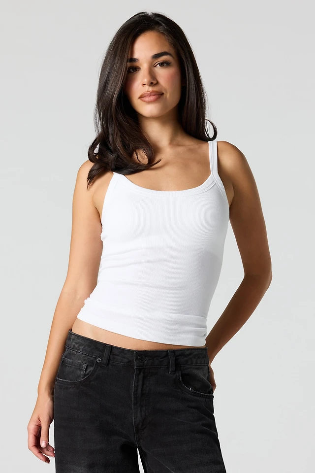 Camisole côtelé courte sans couture avec soutien-gorge intégré