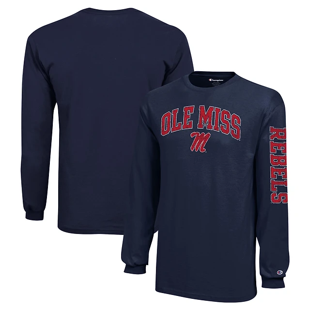 T-shirt à manches longues pour homme Champion Navy Ole Miss Rebels Arch Over Logo