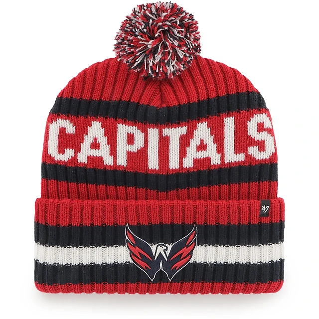 Bonnet en tricot à revers Bering des Capitals de Washington '47 rouge pour homme avec pompon
