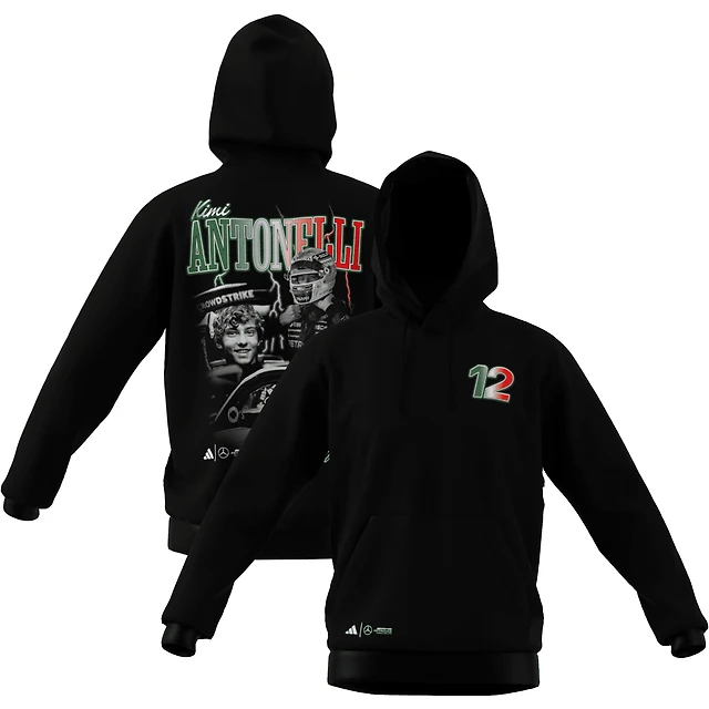 Sweat à capuche graphique noir pour jeunes adidas George Russell, Mercedes-AMG Petronas F1 Team