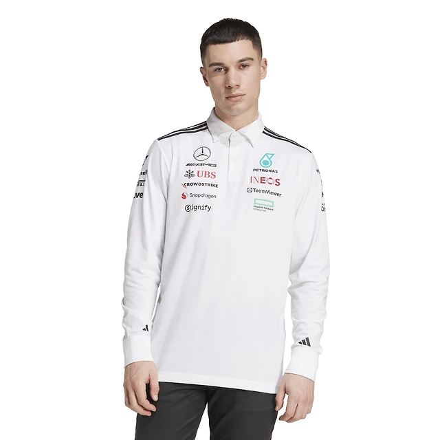 Polo à manches longues adidas blanc Mercedes-AMG Petronas F1 Team pour homme