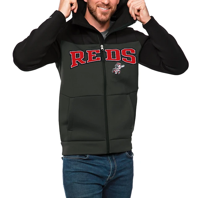 Sweat à capuche zippé intégral Cincinnati Reds noir/anthracite pour homme avec logo Protect Antigua