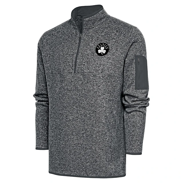 Veste zippée quart de tour Antigua Heather Grey pour homme avec logo métallisé des Celtics Boston