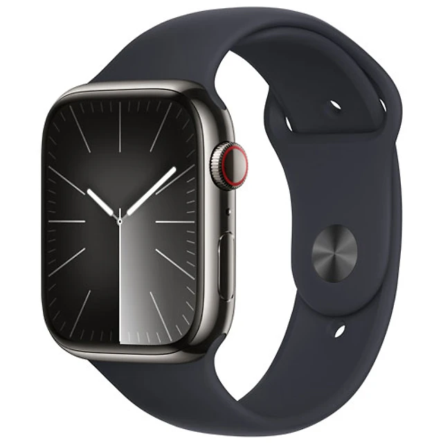 Apple Watch Series 9 (GPS + cellulaire) avec boîtier de mm en acier inoxydable graphite et bracelet sport minuit par Koodo - Moyen/Grand - mm