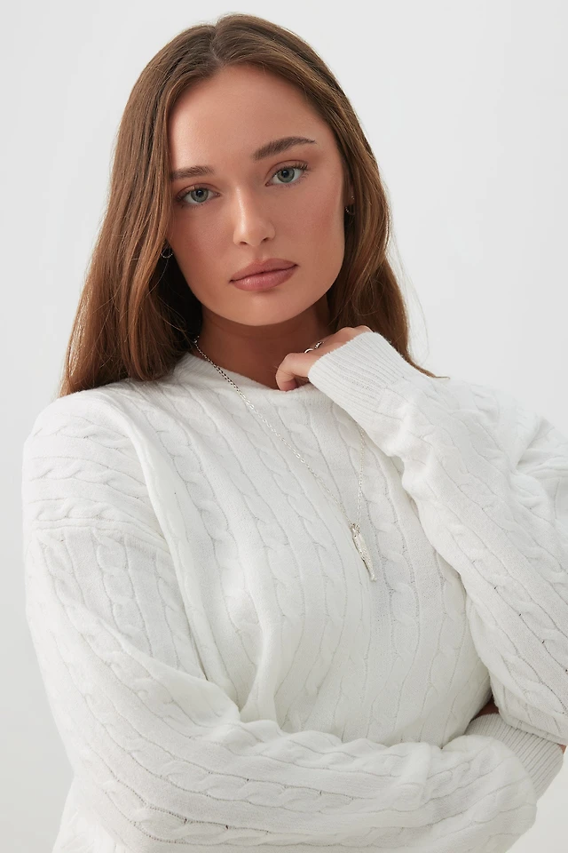 Chandail long en tricot torsadé à rayures