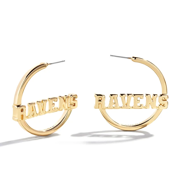 Boucles d'oreilles créoles BaubleBar avec logo des Baltimore Ravens