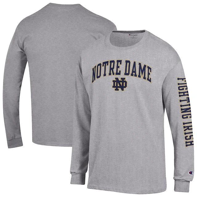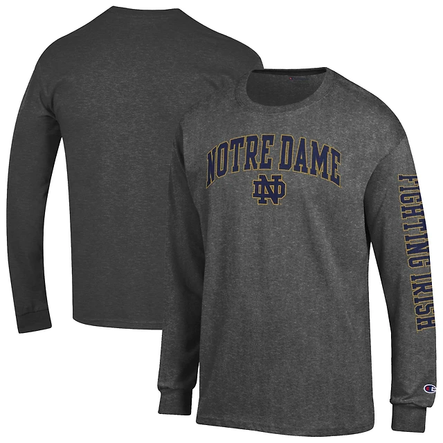 T-shirt à manches longues anthracite pour homme Champion Notre Dame Fighting Irish avec logo Arch Over 2-Hit