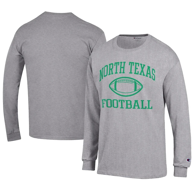 T-shirt à manches longues pour homme, maillot de football américain Champion Grey North Texas Mean Green