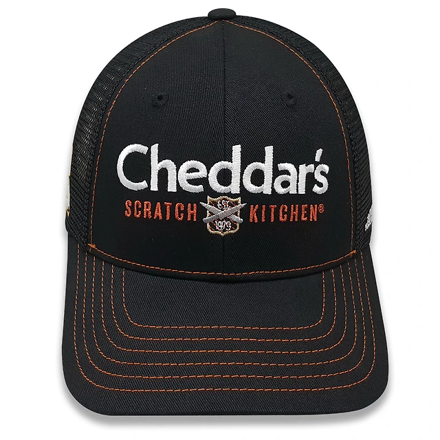 Casquette réglable pour homme à motif drapeau à damier noir Kyle Busch Cheddar's Trucker