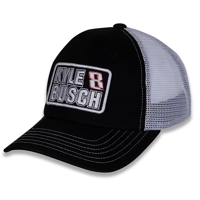 Drapeau à damier pour femme Sports noir/blanc Kyle Busch nom et numéro Patch réglable chapeau