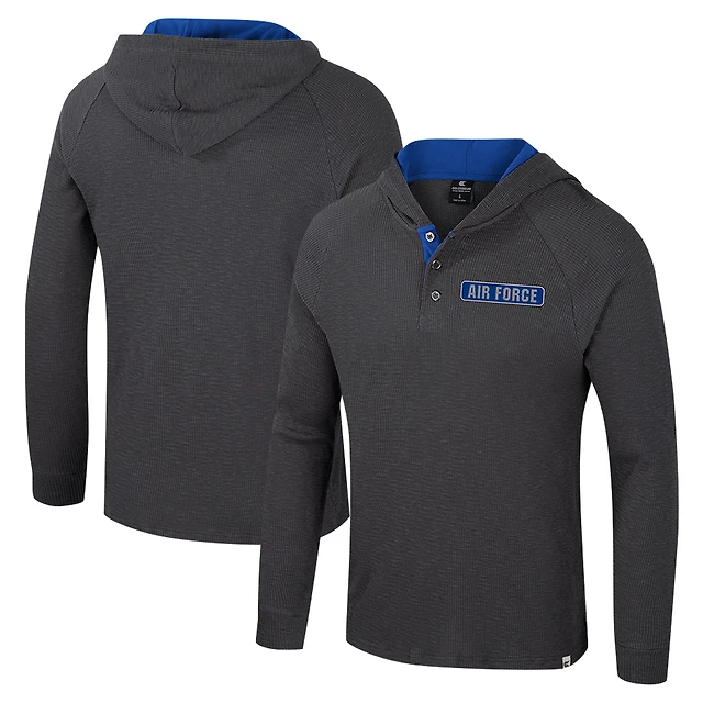 T-shirt à capuche manches longues Henley pour homme Colosseum Charcoal Air Force Falcons Dujour Ralgan