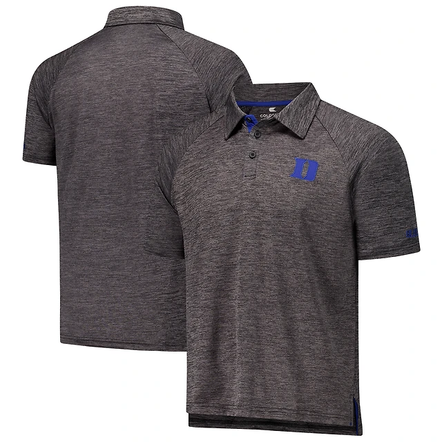Polo d'équipe Down Swing Raglan pour homme Colosseum Heather Charcoal Duke Blue Devils