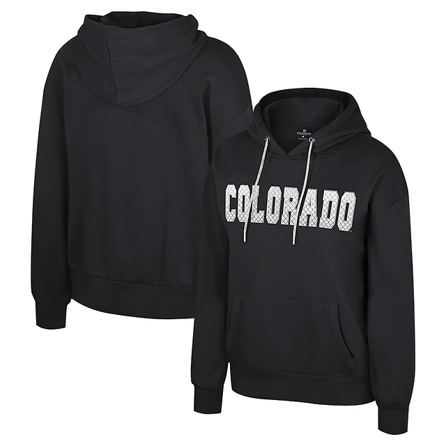 Sweat à capuche cordon de serrage et strass pour femme Colosseum Black Colorado Buffaloes Reflection