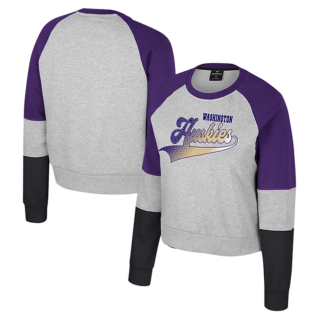 Sweat-shirt à col rond et strass Katinka pour femme Colosseum Heather Grey Washington Huskies