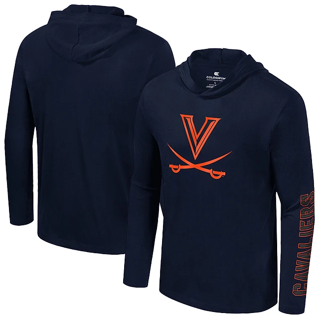 T-shirt à capuche et manches longues pour homme, bleu marine, Virginia Cavaliers, coloris pop, mélange actif