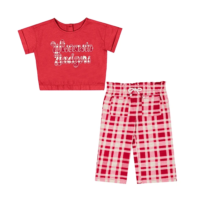 Ensemble t-shirt et pantalon deux pièces pour fille, motif Colosseum, Wisconsin Badgers, Sky Castle