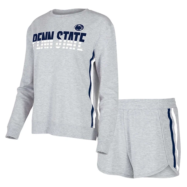 Ensemble de nuit pour femme Concepts Sport Grey Penn State Nittany Lions Cedar Tri-Blend à manches longues et short