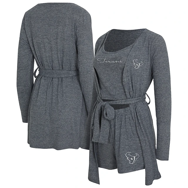 Ensemble débardeur, short et peignoir Rigor de Houston Texans bleu marine chiné pour femme
